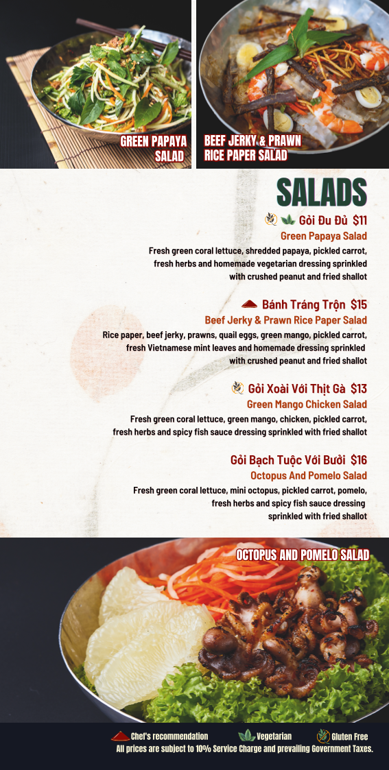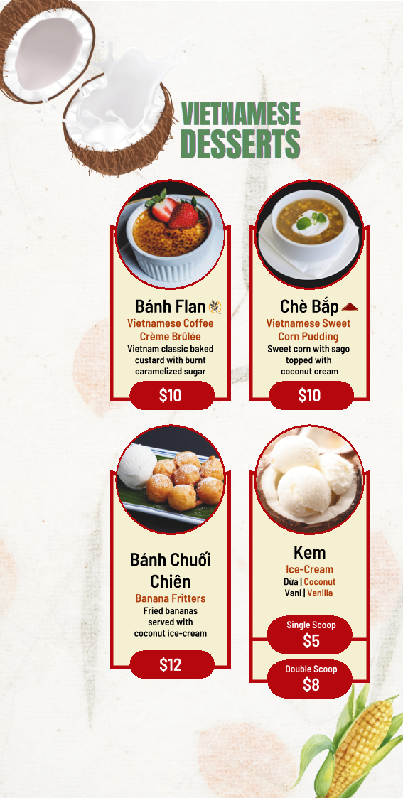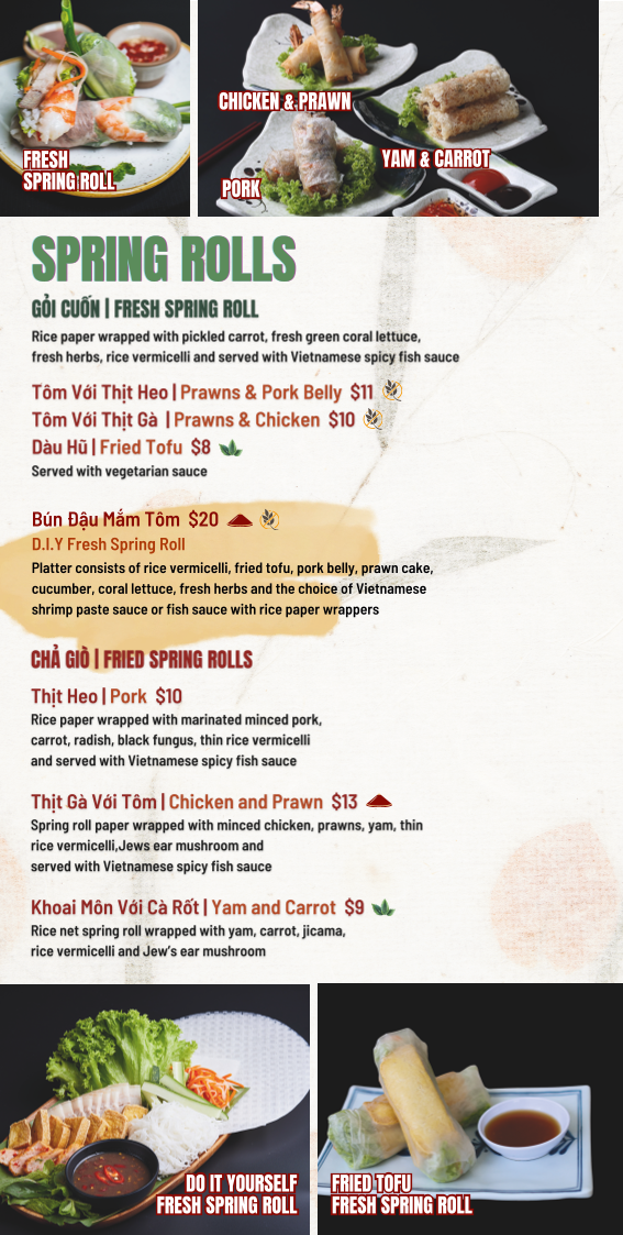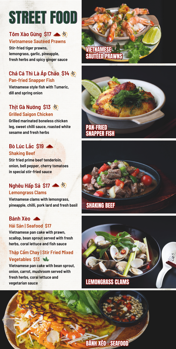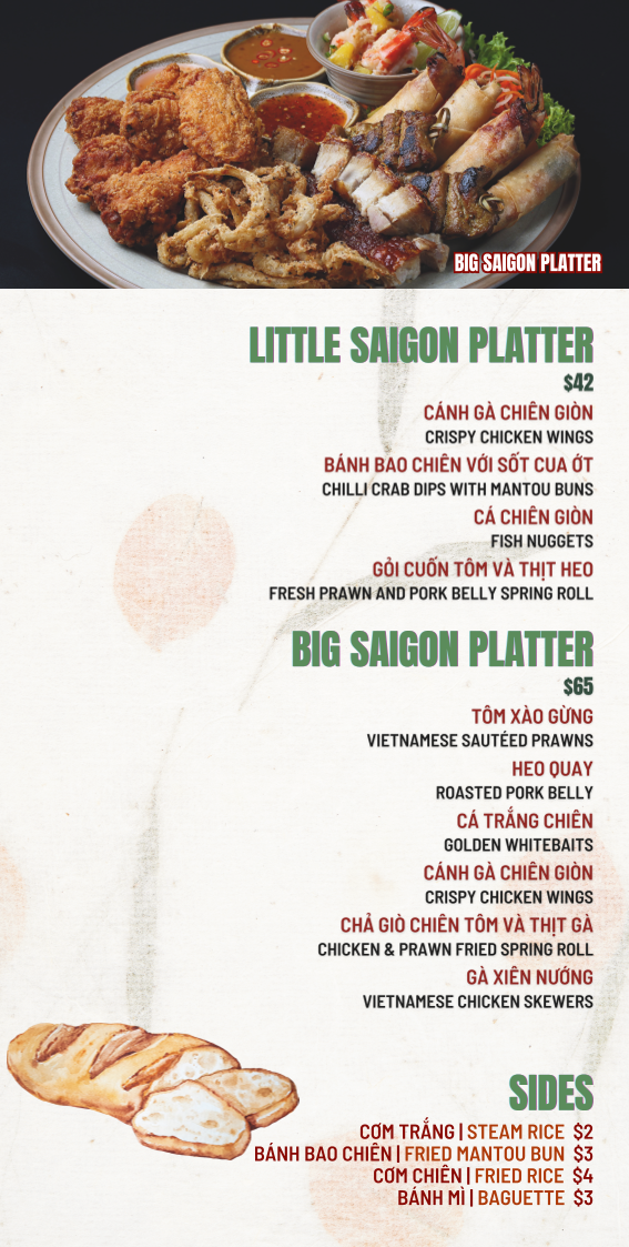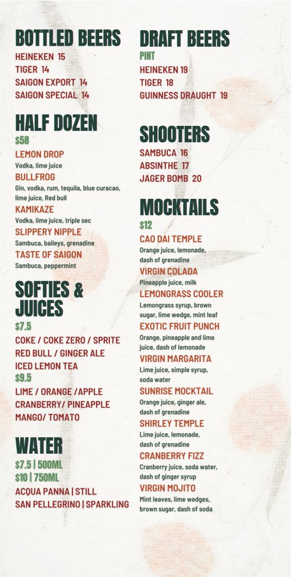 The menu at Little Saigon offers a thoughtful mix of casual Vietnamese classics and refreshing cocktails, making it a great spot for relaxed bites and drinks throughout the day and into the evening. Whether you drop by for a comforting bowl of beef pho during lunch or unwind with a Singapore Sling as live music plays in the background, the food and drinks complement the laid-back riverside atmosphere.